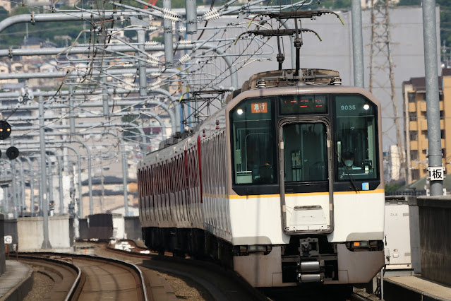 9020系(9035F) 急行大阪難波行き 続いての急行は、再びシリーズ21の前パン車両のEE35編成。 |