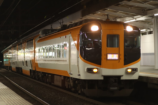80000系ひのとり 奈良行きや 2017レ阪奈特急 続いて、同駅1番線ホームに夜の阪奈運用の6両固定HV編成が入線。 |
