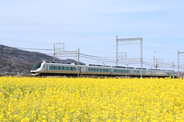 1220系(1321F) 急行大阪上本町行き さらに続いて、A更新車両のVC21編成を含む急行6両が同地を通過。 転落防止幌付きの同車両と菜の花の絡みもよく似合う? |