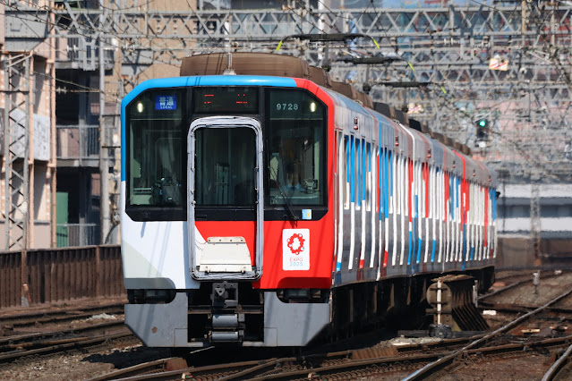 9820系(9728F) 普通尼崎行き 更に暫くして、EH28編成「大阪・関西万博オリジナルラッピングトレイン」が阪神なんば線直通の普通運用として同駅に接近。 これで、阪神・近鉄両方の万博ラッピングを収穫です。 |